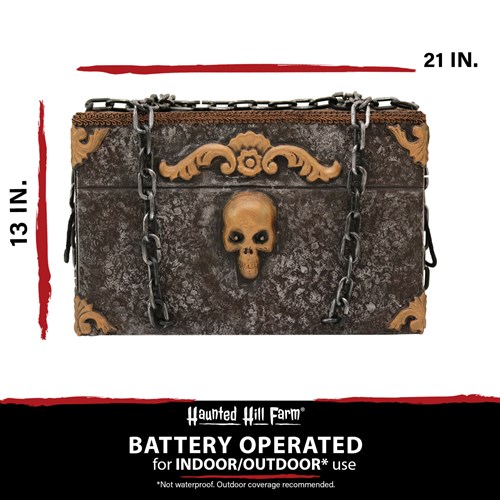 - 13-in. animated and rotating pirate chest for indoor and covered outdoor display