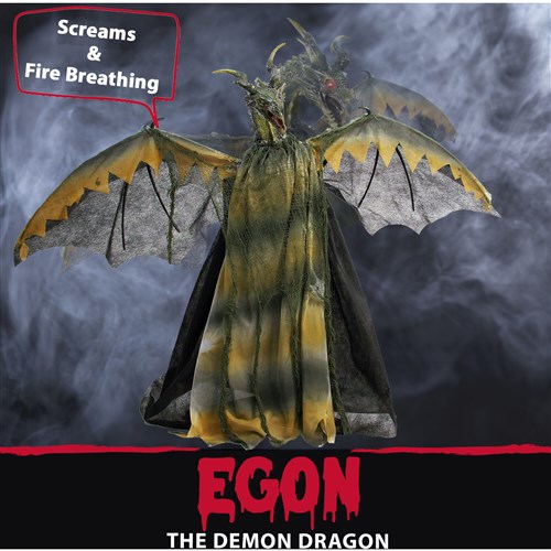 - Egon the Demon Dragon is touch activated- eyes flash red, fearsome fire-breathing sounds, screams