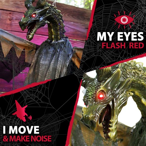 Haunted Hill Farm 39″ Animated Standing Dragon Features: