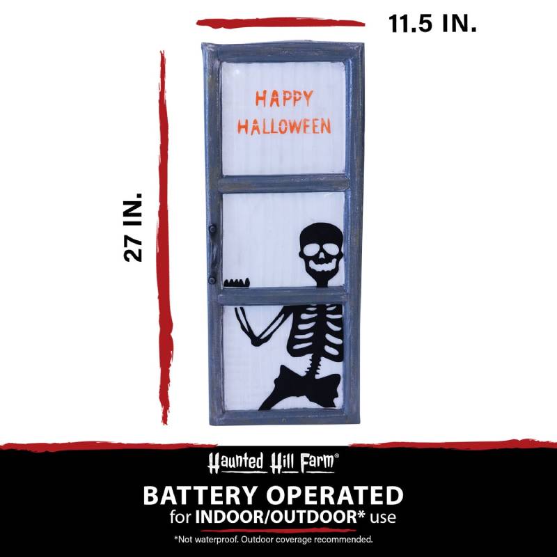 Haunted Hill Farm HHDWNDW-2S 27″ Skeleton Behind Window Light-up Features: