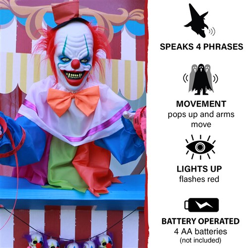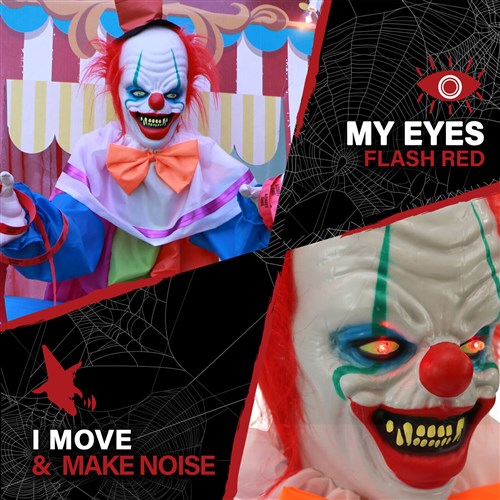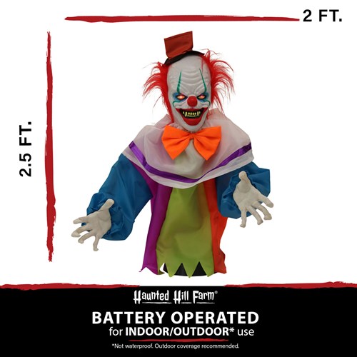- 2.5-ft. animated clown groundbreaker for indoor and covered outdoor display