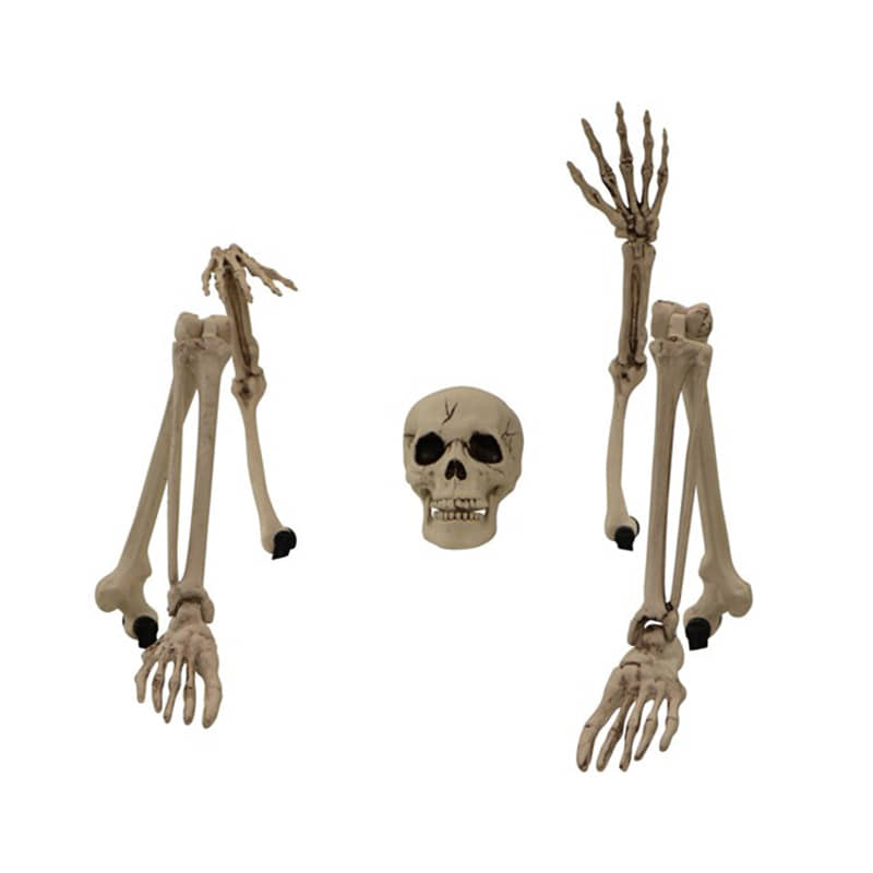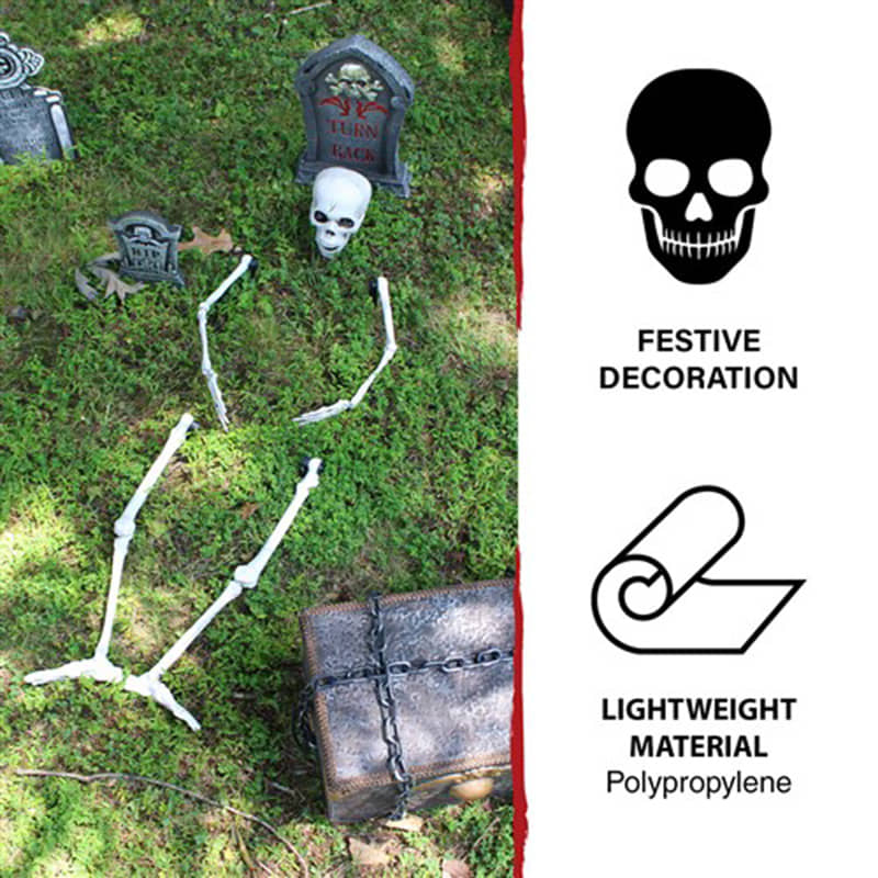 - Place skeleton bones and skull set on the ground for eerie “undead” decor