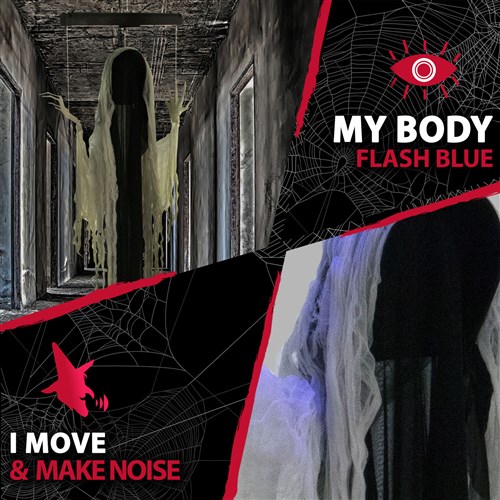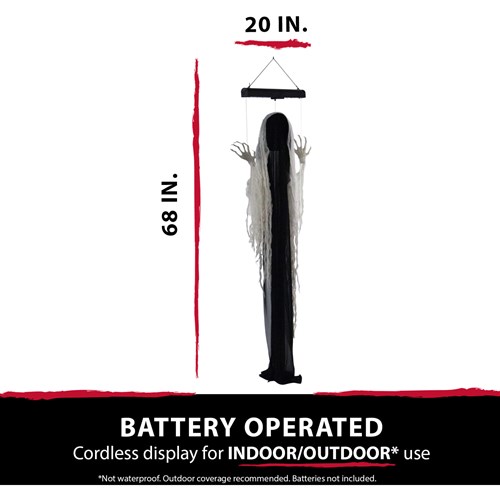 - 68-in. animatronic ghost for indoor and covered outdoor display