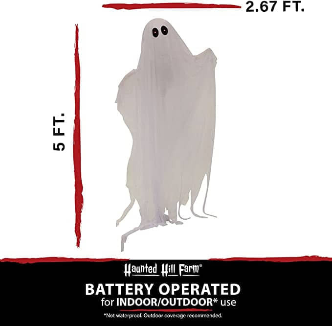 - 5-ft. standing animatronic ghost for indoor and covered outdoor display
