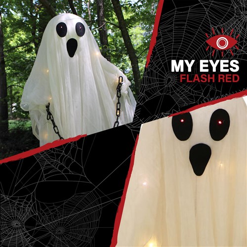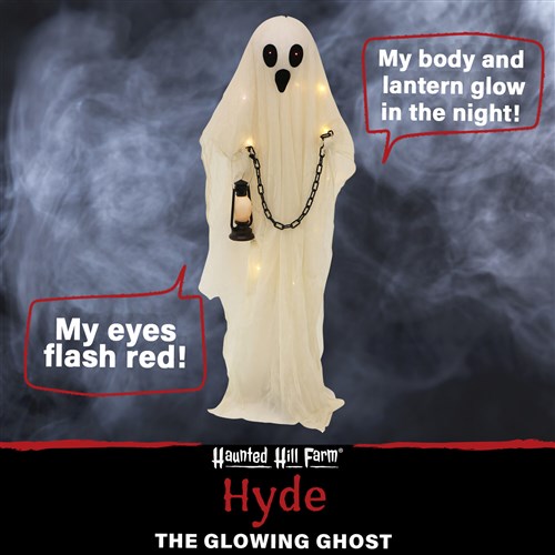 Be afraid! Be very afraid of Haunted Hill Farm’s Spooky Ghost Collection. These blood-curdling creatures are sure to terrify any trick-or-treaters, co-workers, or customers. Hyde, the glowing ghost, ominously lights his path with his lantern and flowy body. Unsuspecting visitors will be shocked when he comes to life with creepy glowing red eyes and white lights shining throughout his body. Poseable arms allow you to change Hyde’s hold on his lantern so you can choose whether to have him reaching out to passersby or close to his chest like he has a terrible secret. Take the classic ghost decor to the next level with this spooky figure.