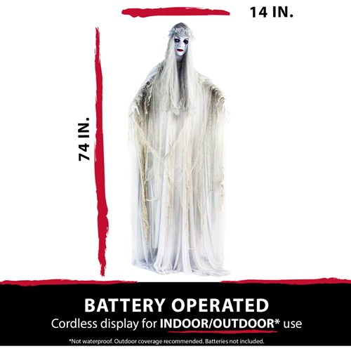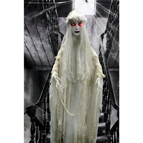 - 6.5 ft. animatronic haunted bride for indoor and covered outdoor display