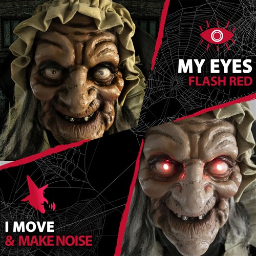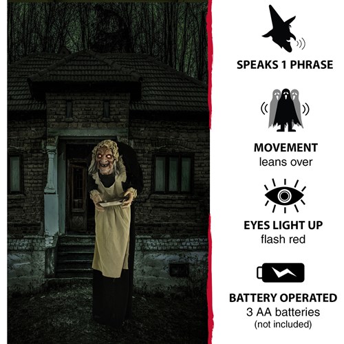 Haunted Hill Farm 60″ Animated Standing Old Lady Features: