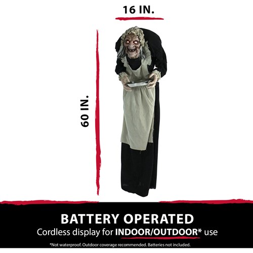 - 5 ft animatronic zombie maid for indoor and covered outdoor displays