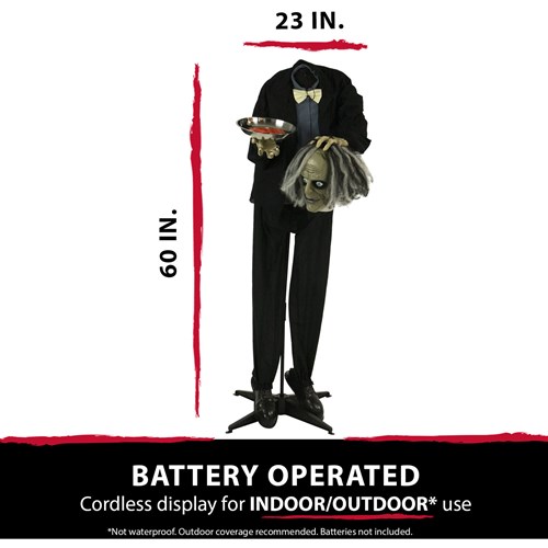 Haunted Hill Farm 59″ Standing Animated Headless Man Features: