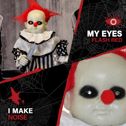 Haunted Hill Farm 32″ Standing Animated Clown Features: