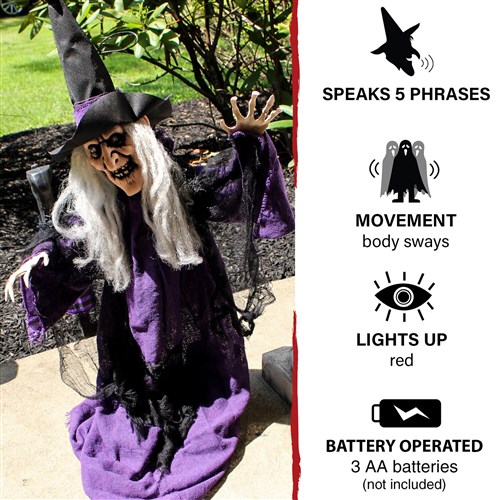 - 31-inch talking witch for indoor and covered outdoor display