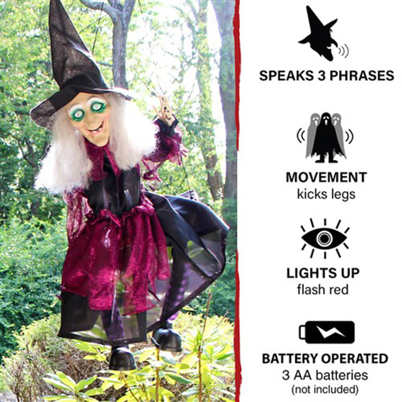 Haunted Hill Farm HHMNWTC-5HLS 39″ Kicking Witch on Swing Features: