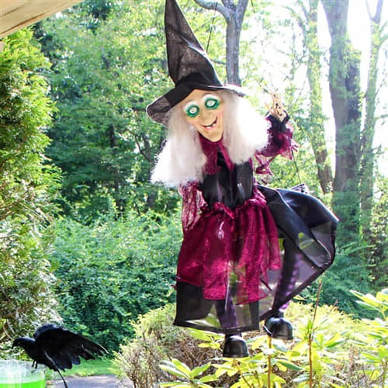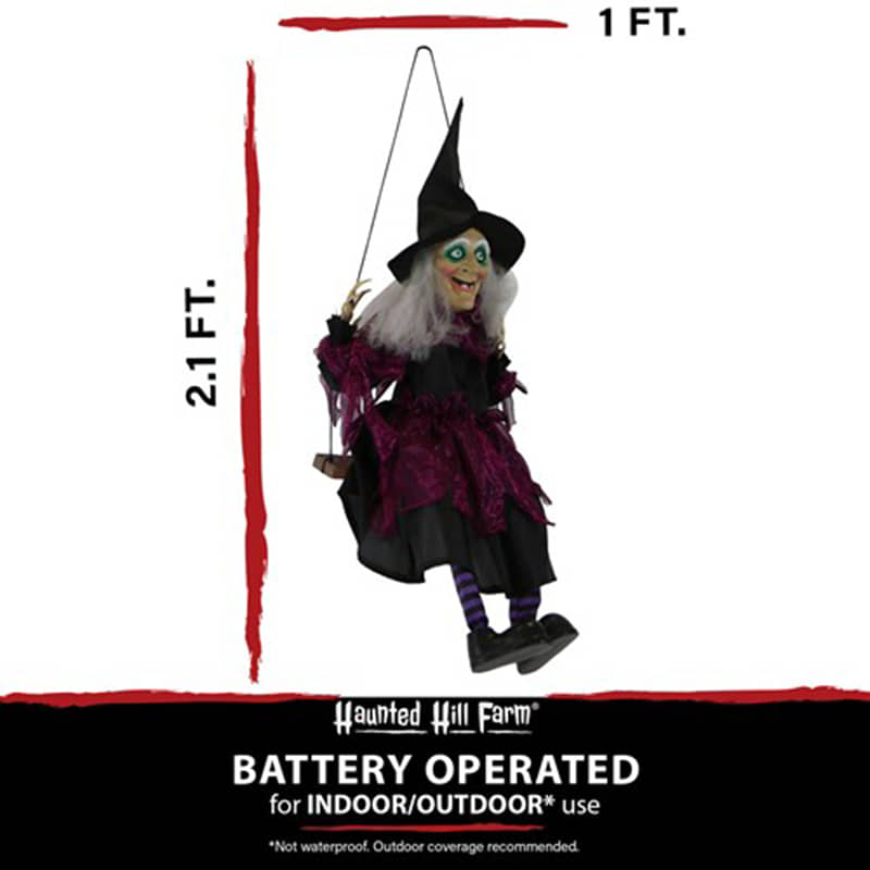 - 2.1-ft. swinging witch for indoor and covered outdoor display
