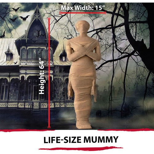 - Standing over 5 feet tall, this wrapped mummy will be the bone-chilling complement to your haunted graveyard or entryway.