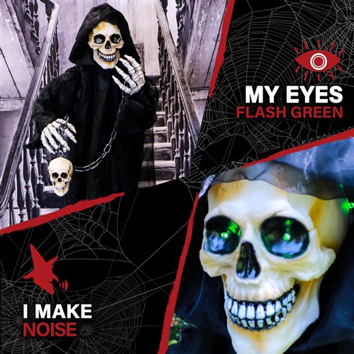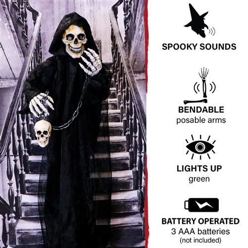 - Multi-Function Prop: Creepy and spooky! This animated reaper lights up and has sound.