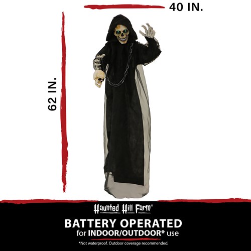 - 62-in. reaper with chain and skull for indoor and covered outdoor display