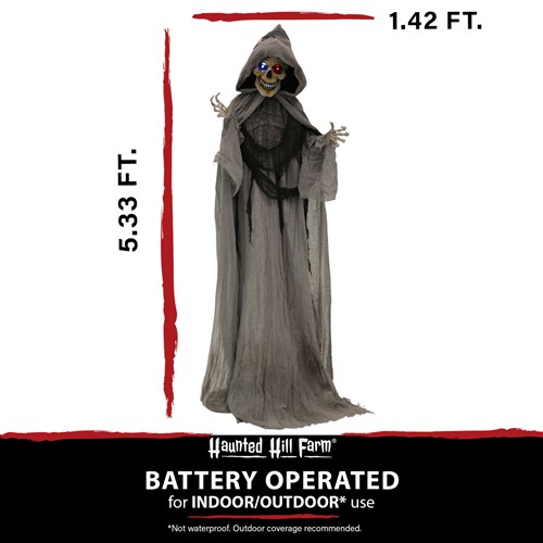 - 5.33-ft. standing light-up reaper for indoor and covered outdoor display