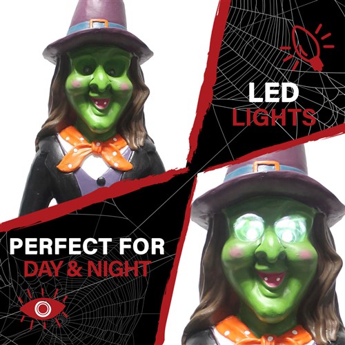 Add some hocus pocus to your holiday decor with our Resin Halloween Decorations by Haunted Hill Farm. Our Scary Witch resin statue stands 4 feet tall – perfect for a haunted house scene that everyone will love. LED lights cast an eerie glow to set a frightful mood and delight your trick-or-treaters. Place it indoors or under a covered area outdoors. Buy two to flank a door or a wide stairway. Use alone or combine with our large variety of seasonal props to create a spooktacular display. Count on quality products from Haunted Hill Farm for lots of spooky fun this Halloween season.