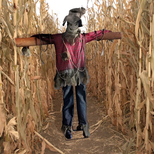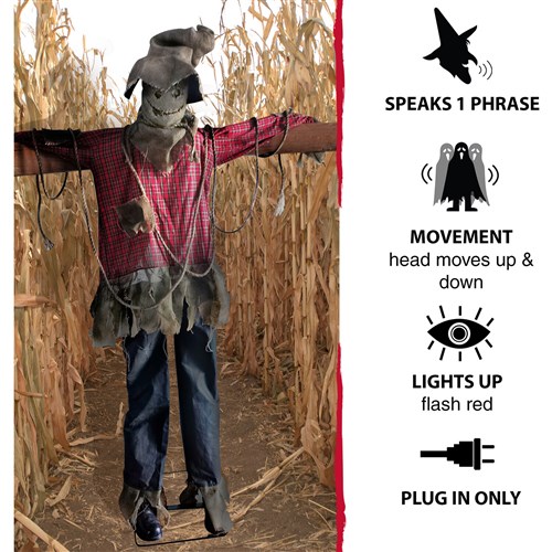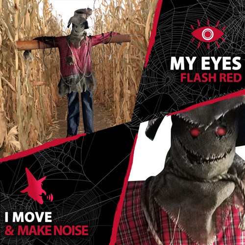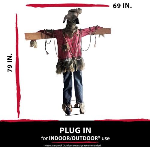 - 6 ft. animatronic scarecrow for indoor and covered outdoor display