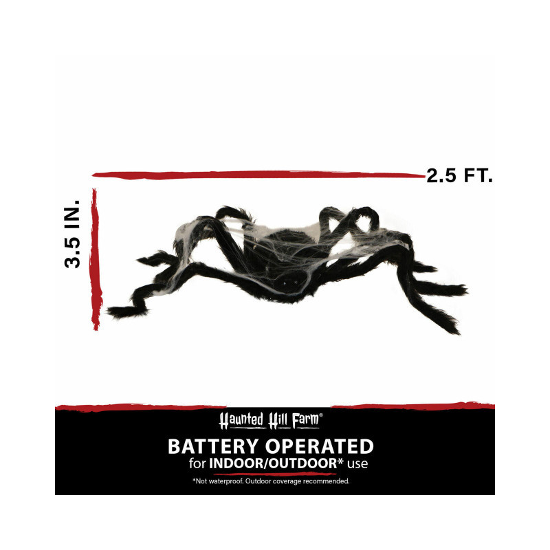 - 2.5-ft. animated spider with web for indoor and covered outdoor display.