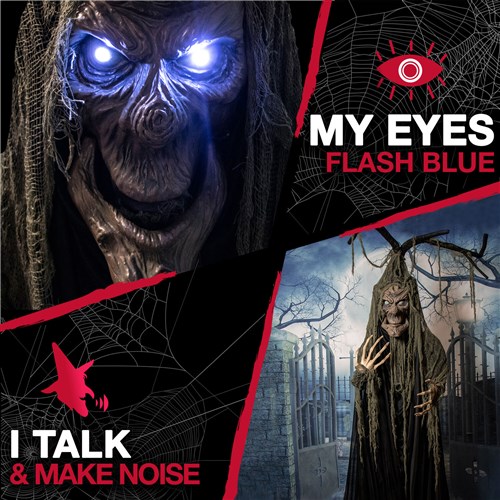 Enter, if you dare, into the horrifying world of Haunted Hill Farm. Our life-size, animated creepy creatures are just what you need to turn your home into the scariest haunted house on the block. Our wide choice of monsters, each more nerve-wracking than the last, is sure to create a hair-raising cast for the creepiest display you can imagine. “Ahhh, yet another creature of the night approaches.” It’s our Talking Tree Man with a mouth that moves and eyes that flash as he speaks! With a scary tree face and long twig fingers, he’ll greet your guests with a sinister voice that will startle even the most stoic visitors. “Have you come for a treat or a trick? Muahahaha!” For thrills and chills so frightening your neighbors will run shrieking in horrendous delight, count on Halloween decorations from Haunted Hill Farm.
