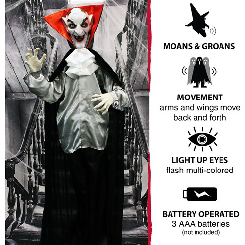 Haunted Hill Farm 65″ Animated Standing Vampire Features: