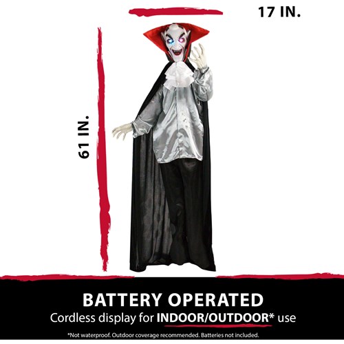 - 61 in. animatronic vampire for indoor or covered outdoor displays