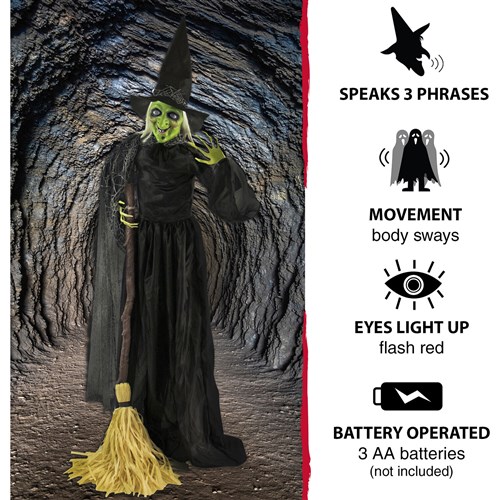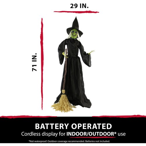 - 71-in. animatronic witch for indoor and covered outdoor display