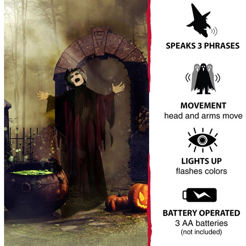 Haunted Hill Farm 63″ Standing Animated Witch Features: