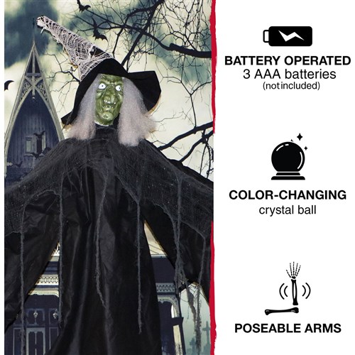 - Animated 6.5-ft. wicked witch with a crystal ball for a multitude of indoor and outdoor display ideas