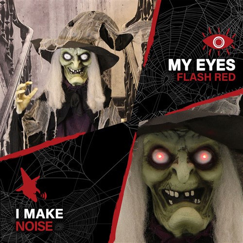 Haunted Hill Farm Animated Standing Witch Features: