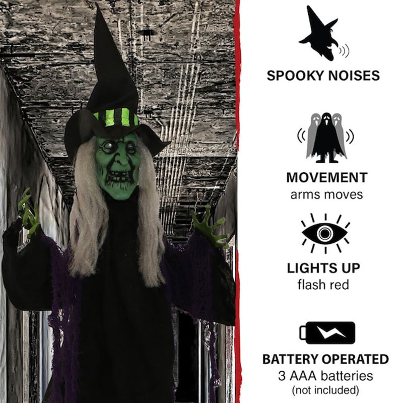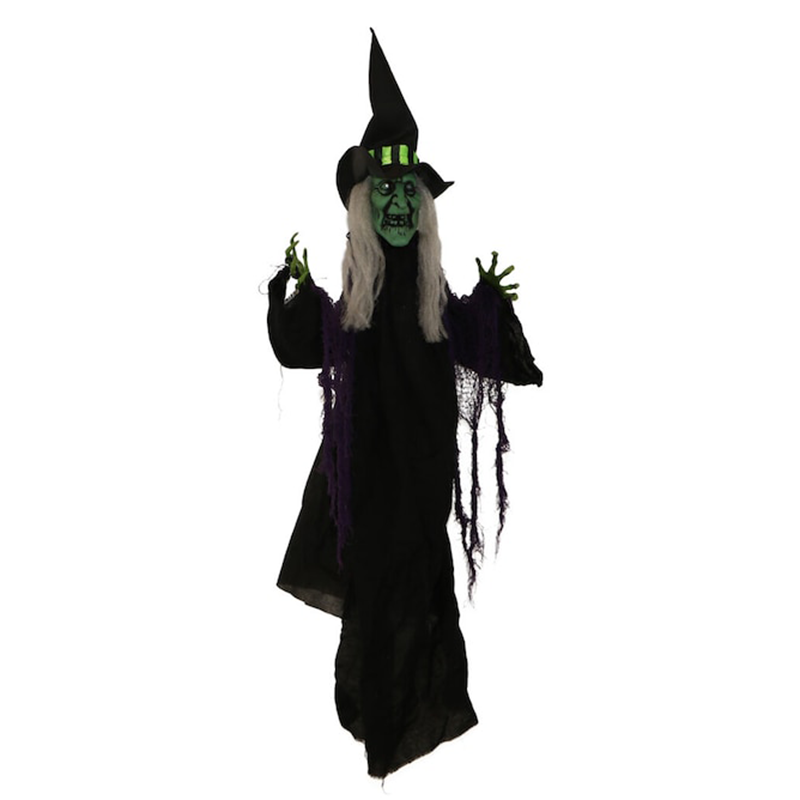 Haunted Hill Farm HHWITCH-29HLSA 40″ Animated Hanging Light Up Witch Features: