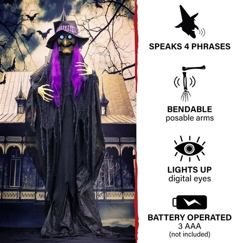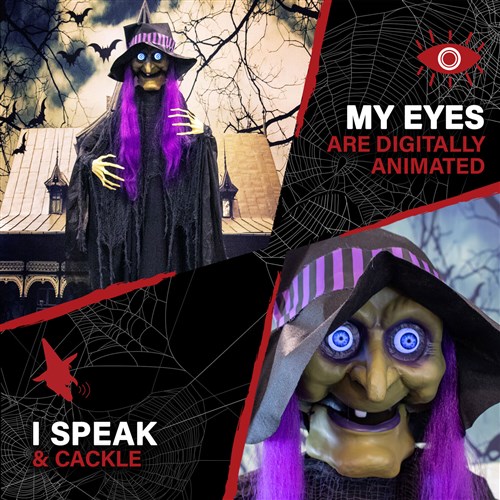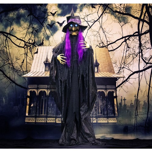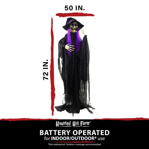 Haunted Hill Farm 72”Animated Standing Purple Haired Witch Features: