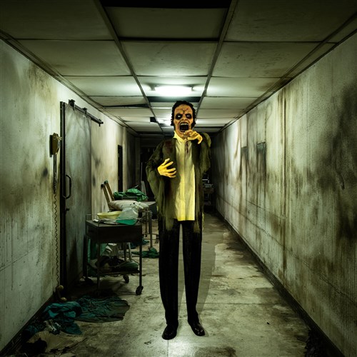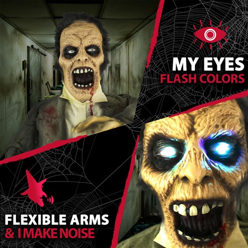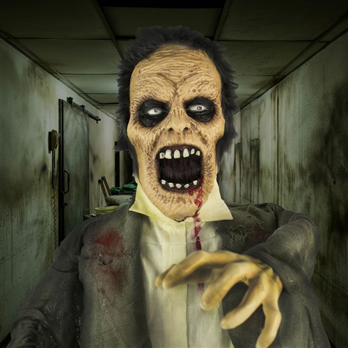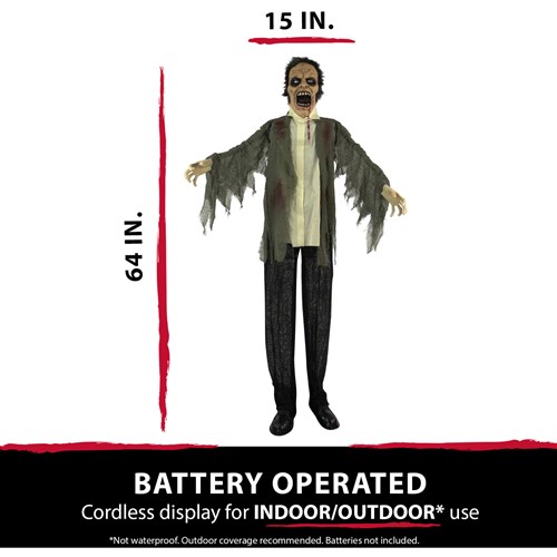 - 64 in. animatronic zombie for indoor and covered outdoor display