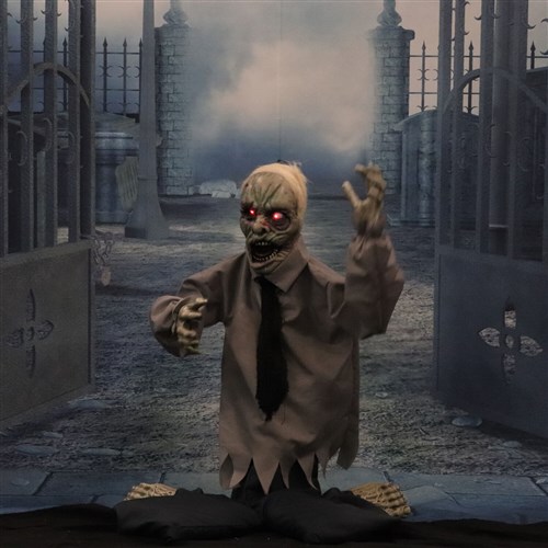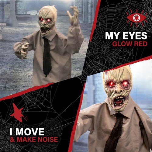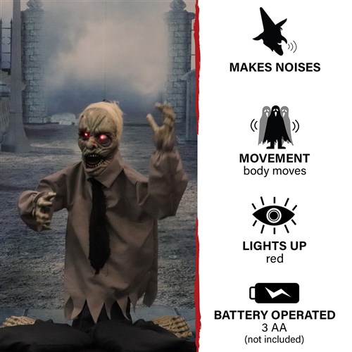 Haunted Hill Farm 34″Animated Sitting Tattered Zombie Features: