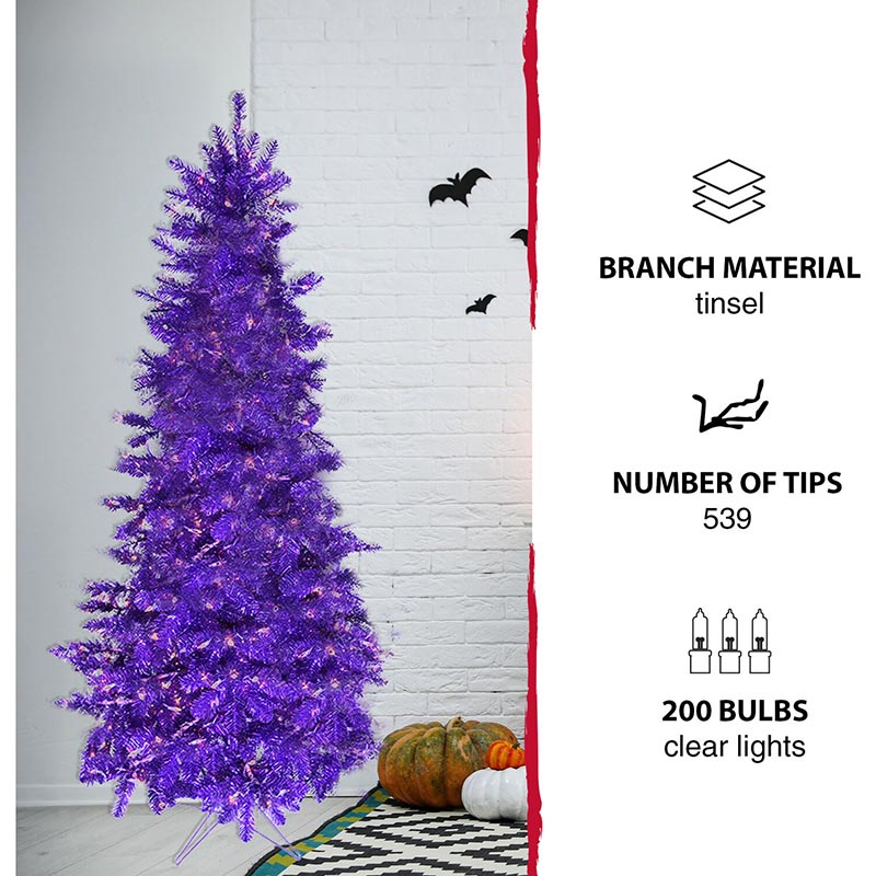 - NOT JUST FOR CHRISTMAS! Shiny purple tinsel puts a playful twist on your Halloween decorating. Our 5-ft. tree will delight your trick or treaters with frightfully fun whimsy!