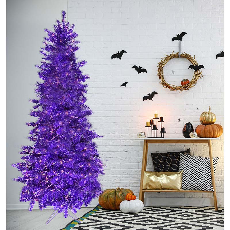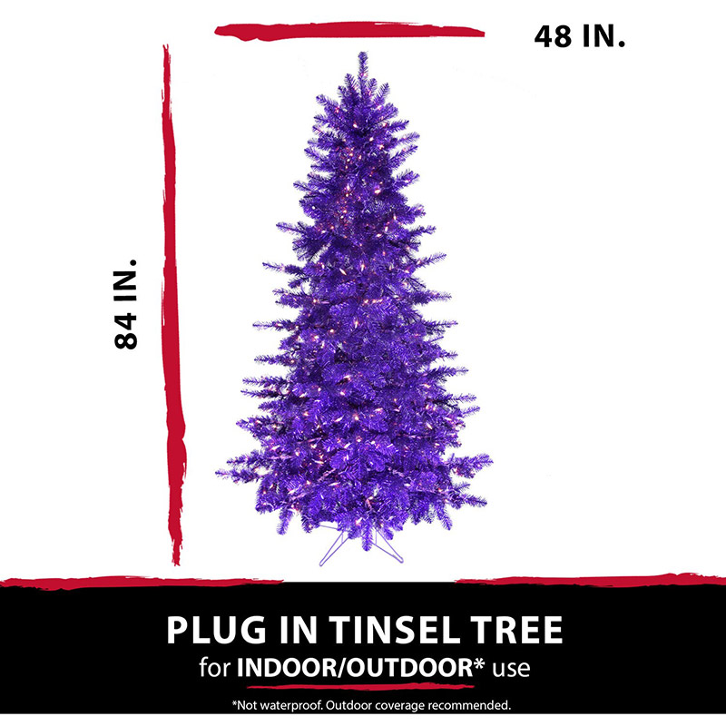 - NOT JUST FOR CHRISTMAS! Shiny purple tinsel puts a playful twist on your Halloween decorating. Our 7-ft. tree will delight your trick or treaters with frightfully fun whimsy!