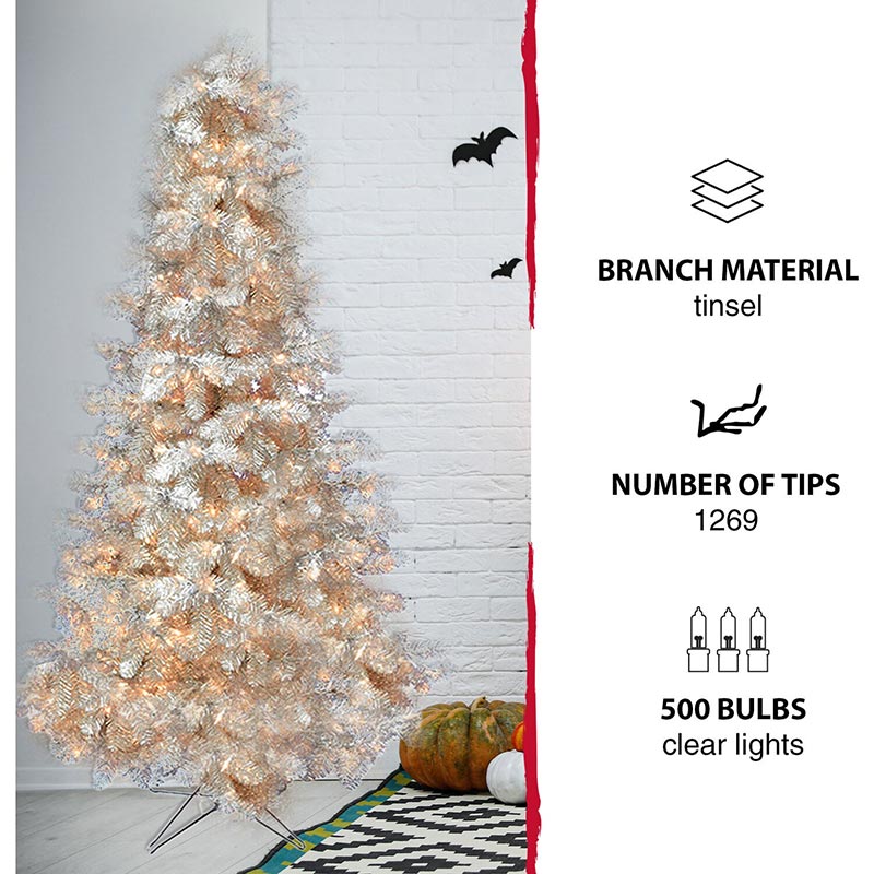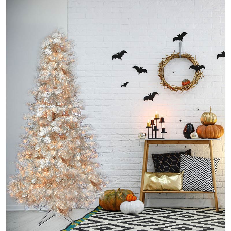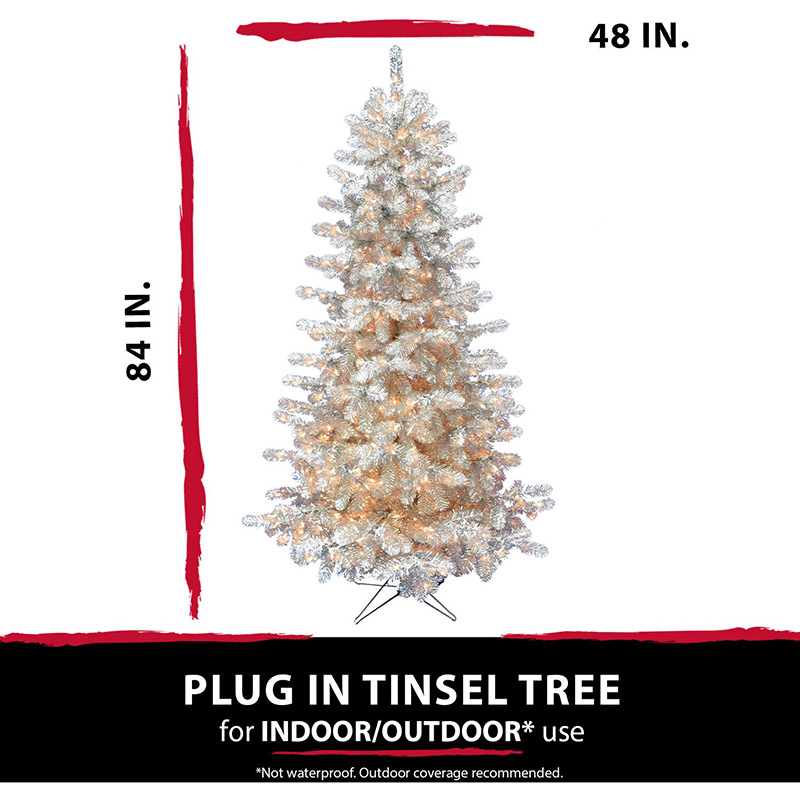 - NOT JUST FOR CHRISTMAS! Shiny silver tinsel puts a playful twist on your Halloween decorating. Our 7-ft. tree will delight your trick or treaters with frightfully fun whimsy!