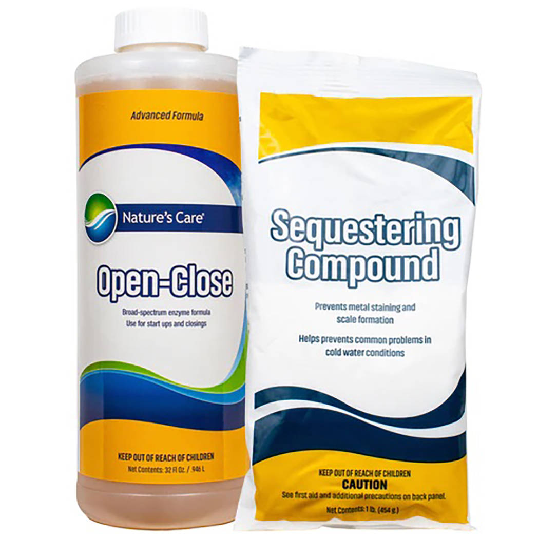 B) Second: add Open-Close. Aids to remove contaminants that may have built up during stagnant water inactivity. Helps to refresh the filter, prevent waterline rings, aids chlorine to kick the water off fresh.
