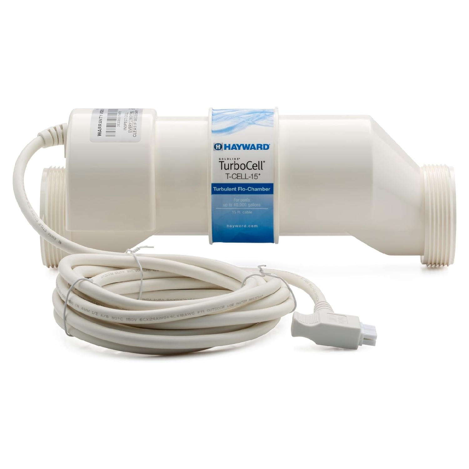 Hayward AquaRite T-Cell-15 TurboCell for 40K gallon pools is a high-capacity salt chlorination solution designed to deliver consistent sanitation and superior water quality for large residential and light commercial pools. Engineered for dependable chlorine generation, this TurboCell efficiently converts dissolved salt into pure chlorine, maintaining balanced water conditions while reducing the need for manual chemical handling. Reliable output supports clean, clear water with minimal fluctuation, enhancing overall pool comfort and usability.