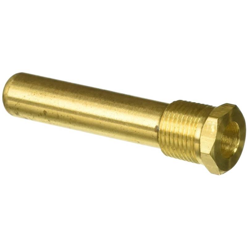 The Hayward CHXTBW1930 SGII-60 2-7/8″ Thermostat Bulb Well is a one-piece, brass thermowell used in a number of Hayward Heaters. This product has been manufactured for durability and long-lasting use. This replacement product is a round cylinder that is open at one end and closed at the other end. The hex head is located on the open end with threads below the hex head. This device is compatible for use on a wide variety of Hayward model heaters.
