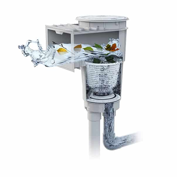- Snap-in-weir adjusts automatically to 4.5″ water level variation
