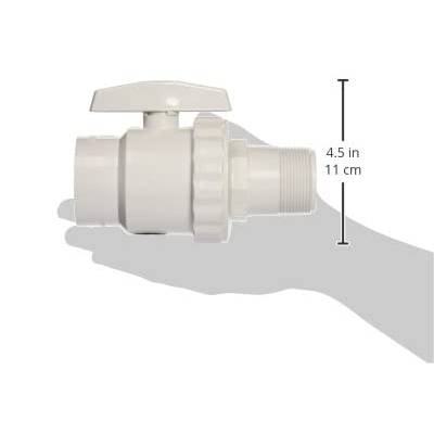 The Hayward SP0723S 1.5″ MPT x 1.5″ ABS TrimLine Ball Valve is a replacement product that is designed for maximum flow efficiencies and pressure ratings up to 50 psi. This product features a dial handle for easy flow regulation and visual indication of valve setting as well as Teflon seats for dependable sealing. The union end connector on this product accurately aligns the ball and provides simple disassembly of piping connection.