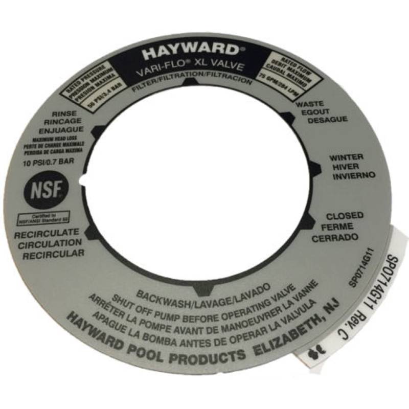 The Hayward SPX0714G Multiport Valve Position Label is a replacement product that is designed for use with Hayward Vari-Flo XL Valve SP0714T. This is a genuine Hayward replacement product that has been manufactured with high-quality materials for durability and longevity.