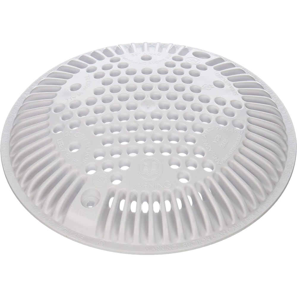 This is the Hayward WGX1048E Round Cover For Suction Outlet, a white 8 inch round main drain suction outlet cover only for floor or wall applications. All Hayward WG Series suction outlets and replacement covers are VGB compliant and are tested to ASME A112 19.8b-2009 and ANSI/APSP-16 standards as well as meeting CPSC requirements. Hayward drain covers can be used as a single replacement cover when installed on the same suction line as an EcoStar SVRS or a Stratum SVRS. Get yours today from Pool Warehouse!