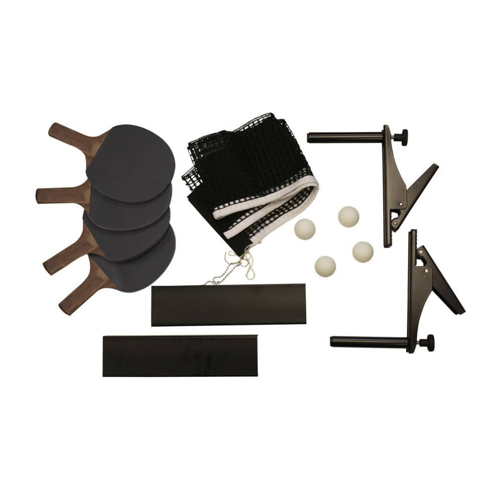 - Includes 4 Paddles, 4 Balls, 2 Mighty-Grip Clamps, 1 Net and 2 Anti-Sag Blocks