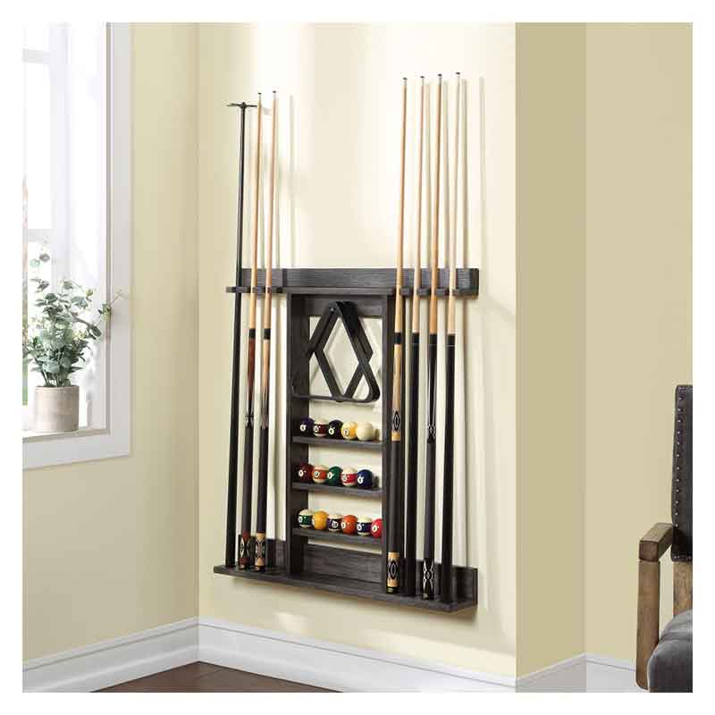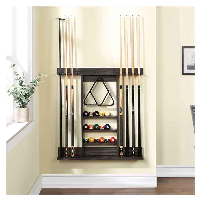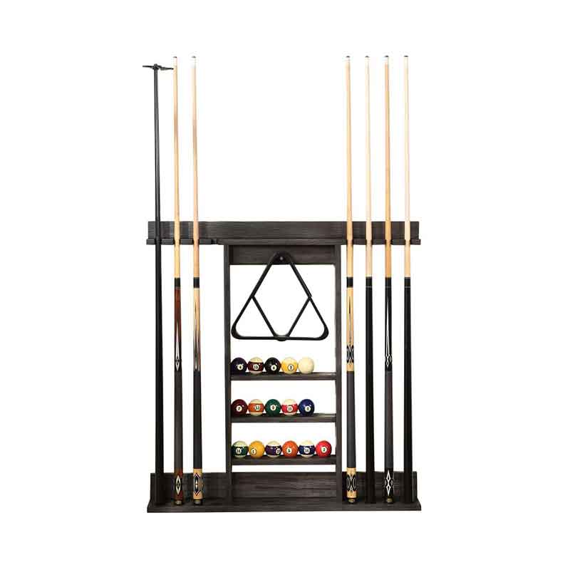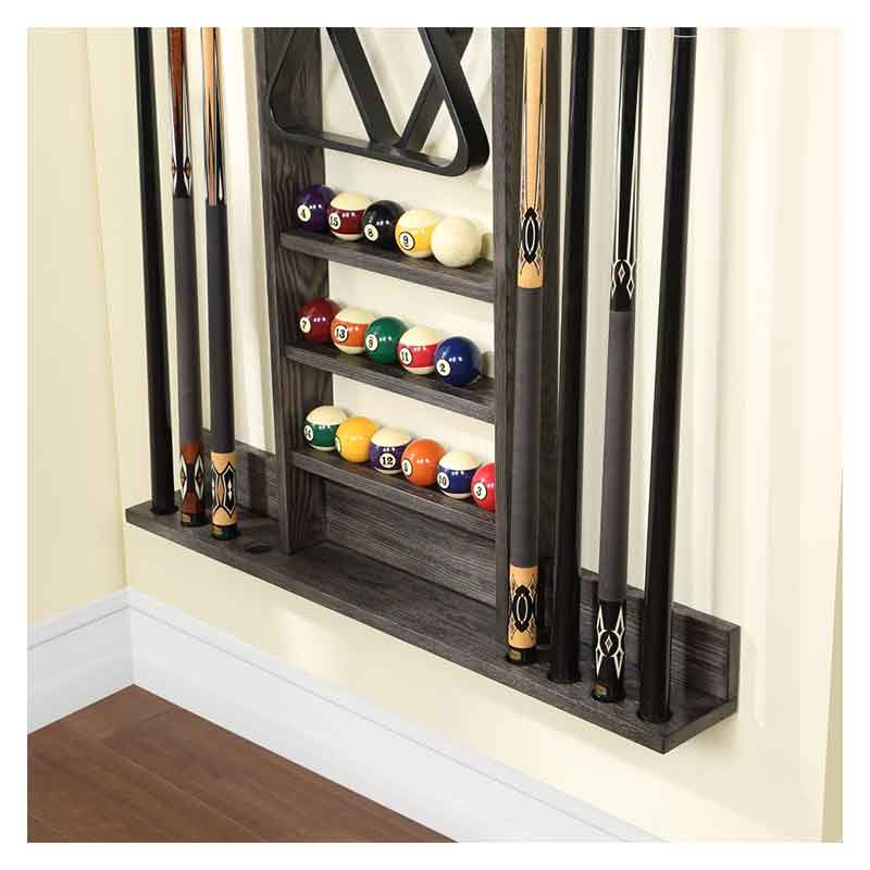 HB Wall Racks easily store up to 8 cues while also housing ball racks, balls, brushes, and any other billiard accessories. Offered in a variety of finishes that coordinate with these pool tables, this is the perfect companion piece to store your accessories in style!