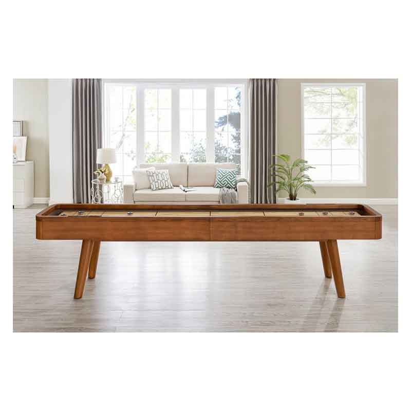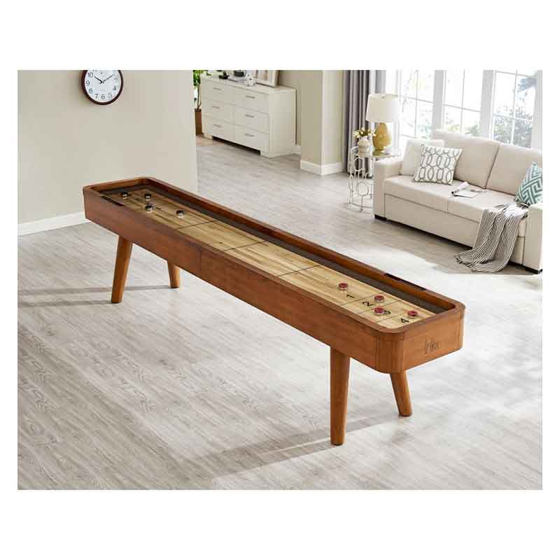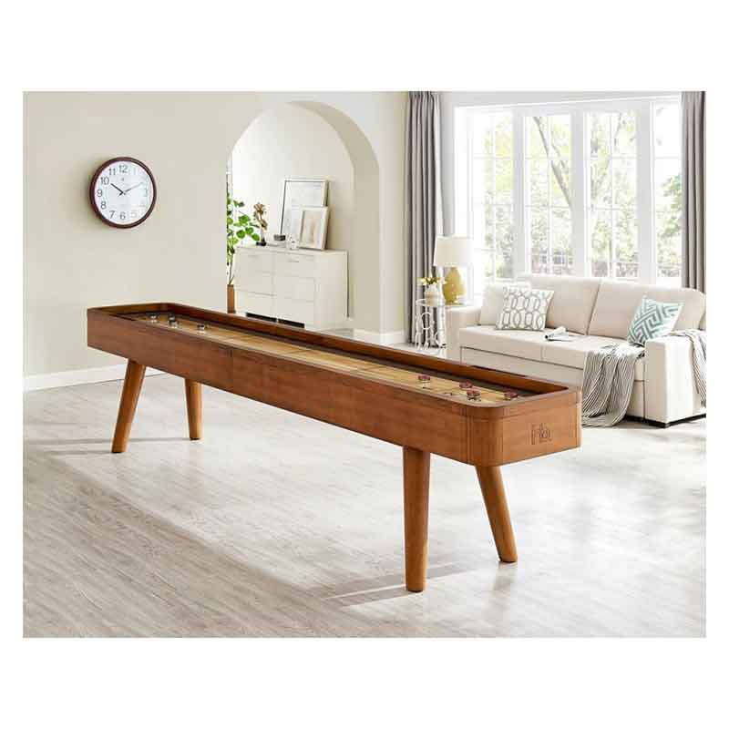 Since the boards are made of wood, they will naturally contract and expand at times, based on the humidity and temperature levels within the home. The table’s climatic adjusters can be used to help account for these changes and ensure the playfield is properly set for quality gameplay at all times! Experience hours and hours of entertainment with this durable, high-quality shuffleboard table.