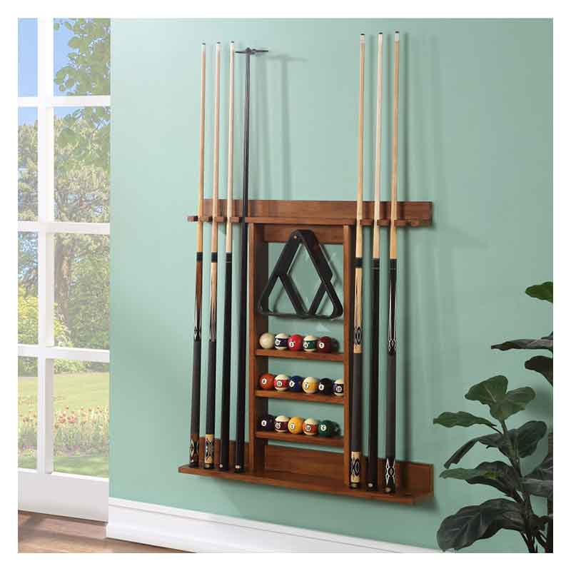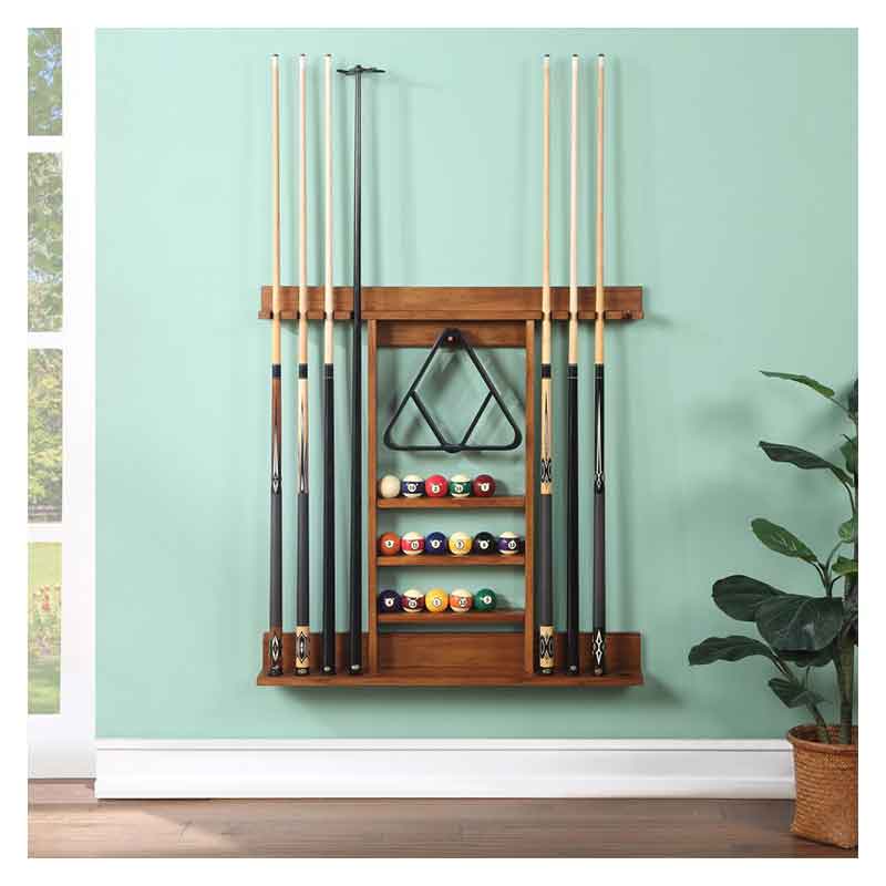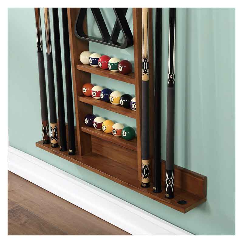 HB Wall Racks easily store up to 8 cues while also housing ball racks, balls, brushes, and any other billiard accessories. Offered in a variety of finishes that coordinate with our pool tables, this is the perfect companion piece to store your accessories in style!