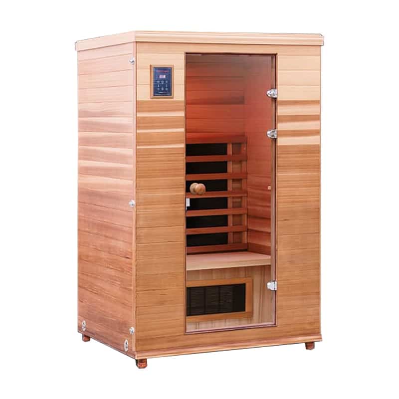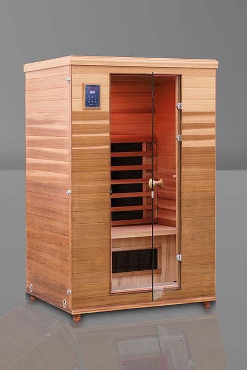 The Health Mate Renew II Infrared Sauna is a 2 person sauna and is great for couples or spending time with friends. It small enough that it can fit inside or outside of the house, but also big enough that two adults can fit comfortably in it. It is made with the finest Western cedar wood, and also has 7 infrared heaters in it. To even help you relax more we offer a 5 year warranty on the heaters and putting the sauna together can be done in less than 30 minutes with two people! Our two person sauna also comes with amazing sound that you can plug any device in via an AUX input, and you can also plug this sauna right into your house into any 120 volt outlet. So if you are looking to burn fat, relax more, and get a good sweat on this is the infrared sauna for you!